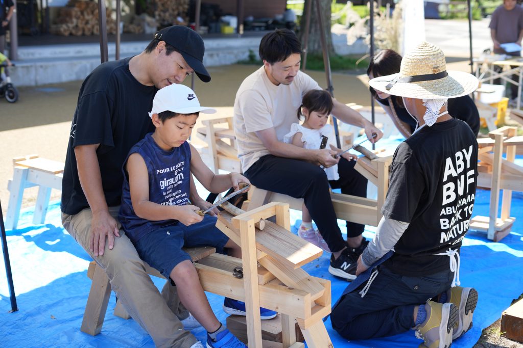 “削り馬”という木を固定して削る作業台を使うので小さな お子さまも安全に木を削ることができます。