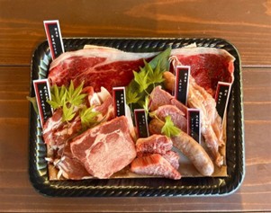 国産牛をはじめ、鹿児島県産黒豚や国産鶏、厚切り牛タンまで楽しめる贅沢セット。