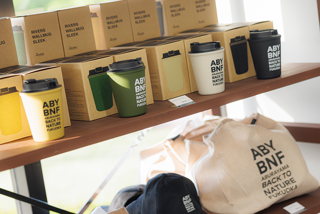その名のとおり、森の中にあるキオスク(コンビニエンスストア)。ソフトドリンクやアルコール飲料、軽食や菓子、キャンプに必要な日用雑貨や薪なども取り揃えています。Tシャツやタンブラーなどクールな「ABURAYAMA FUKUOKA」オリジナルグッズも販売。